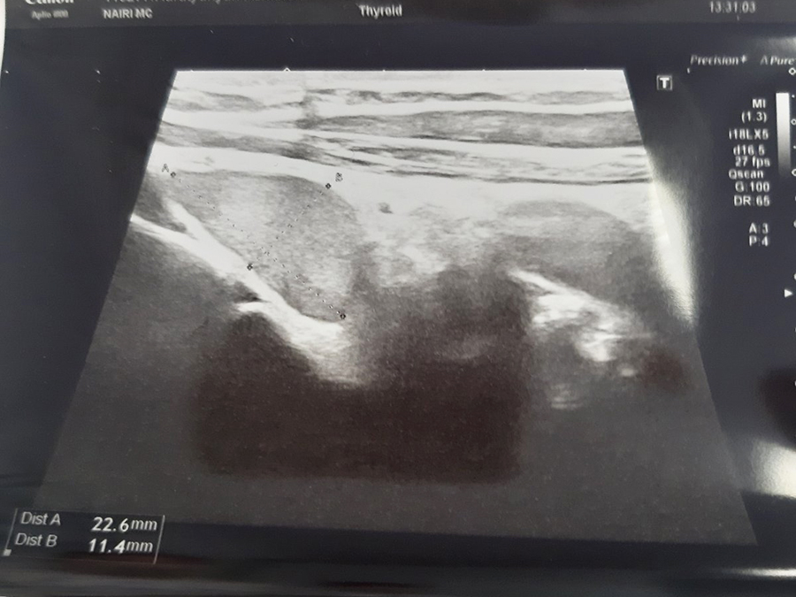 Ցավոք Հայաստանում հարվահանաձև գեղձի ադենոմաների ախտորոշման ոսկե ստանդարտ համարվող հարվահանաձև գեղձի սցինտիգրաֆիան դեռևս առկա չէ, բայց մոտ ապագայում սպասվում է: Ներկայացված կլինիկական դեպքի պարագայում մասնագետները վստահ էին, որ առկա է հարվահանաձև գեղձի ադենոմա, թեև կար մտավախություն, որ նրա տեղեկայման հայտնաբերման հարցում հնարավոր են որոշակի խնդիրներ: Բարեբախտաբար, թե՛ ՈՒՁՀ, թե՛ ՀՏ հետազոտությունները հնարավորություն տվեցին հայտնաբերել ախտահարված օրգանն ու նրա տեղակայումը, իրականացնել համապատասխան բուժում և ստանալ ցանկալի արդյունքներ: