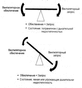 Острая дыхательная недостаточность (ОДН) в широком смысле определяется специалистами как тяжелое нарушение газообмена и проявляется двумя основными первичными типами: капническим либо гипоксическим расстройствами. Главенствующим механизмом в формировании ОДН является нарушение баланса между вентиляторным запросом пациента и возможностью его обеспечения (рис.1).